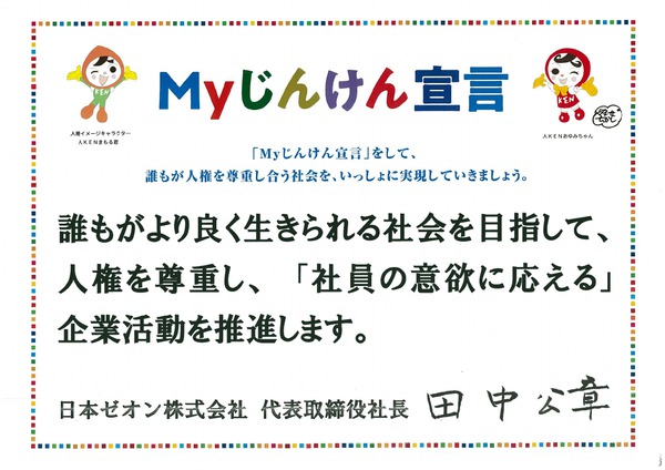 - 誰もがより良く生きられる社会を目指して、人権を尊重し、「社員の意欲に応える」企業活動を推進します。