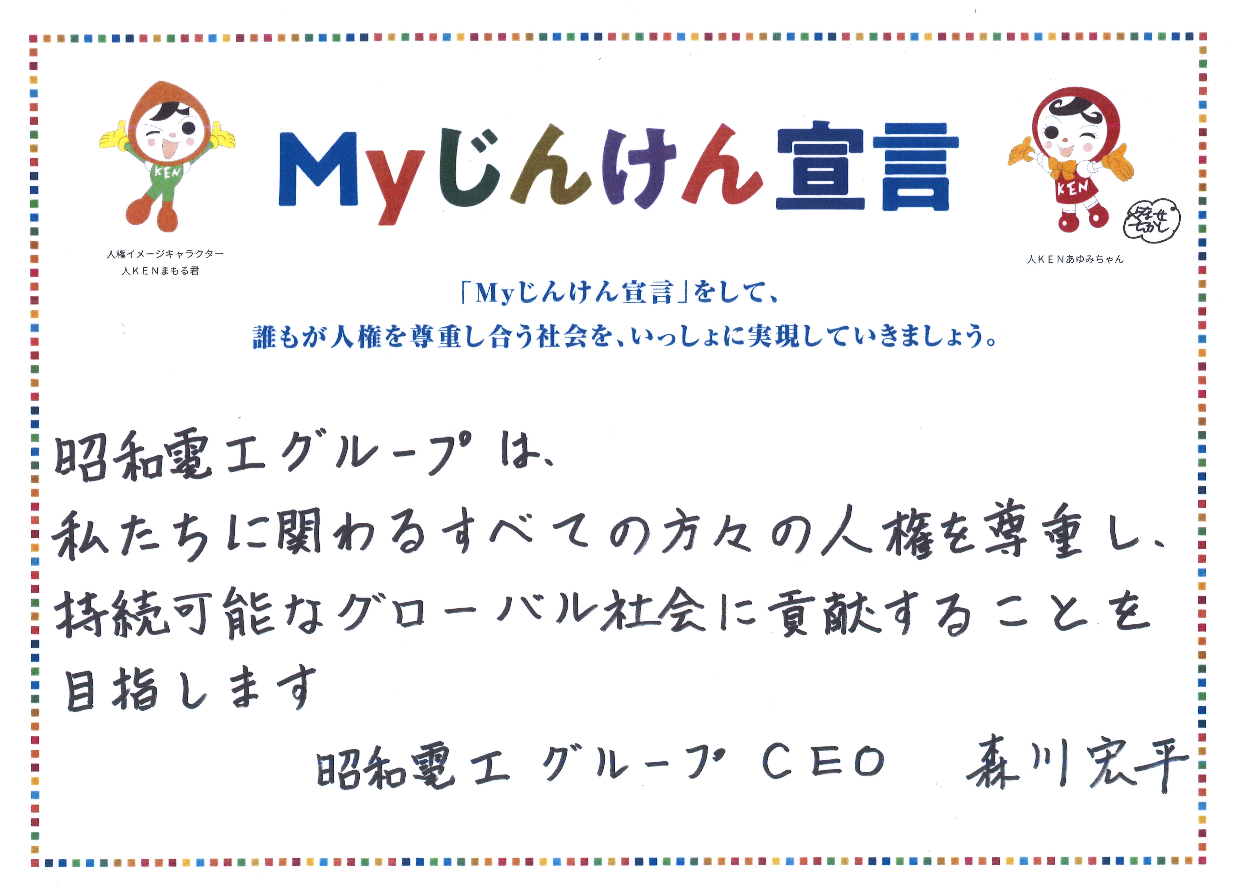 - 昭和電工グループは、私たちに関わるすべての方々の人権を尊重し、持続可能なグローバル社会に貢献することを目指します
