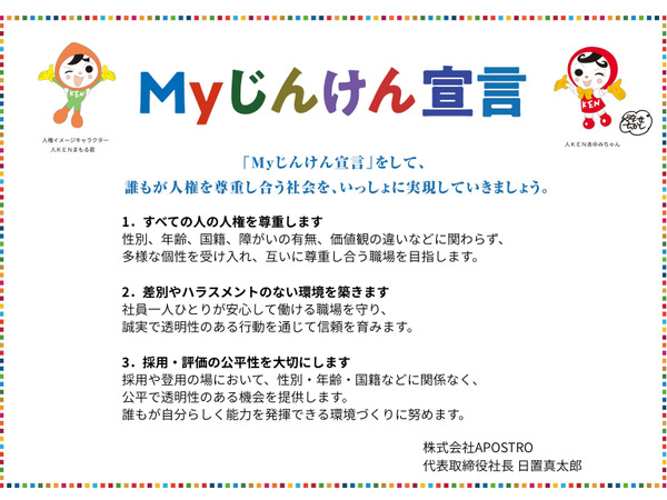 「Myじんけん宣言」をして、宣言に基づき行動することを宣誓します。