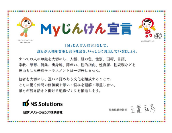 「Myじんけん宣言」をして、宣言に基づき行動することを宣誓します。