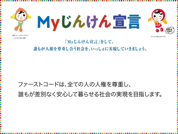 - ファーストコードは、全ての人の人権を尊重し、誰もが差別なく安心して暮らせる社会の実現を目指します。