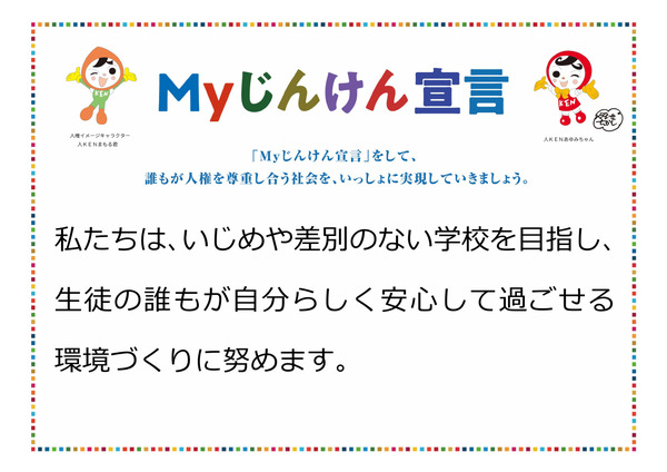 「Myじんけん宣言」をして、宣言に基づき行動することを宣誓します。